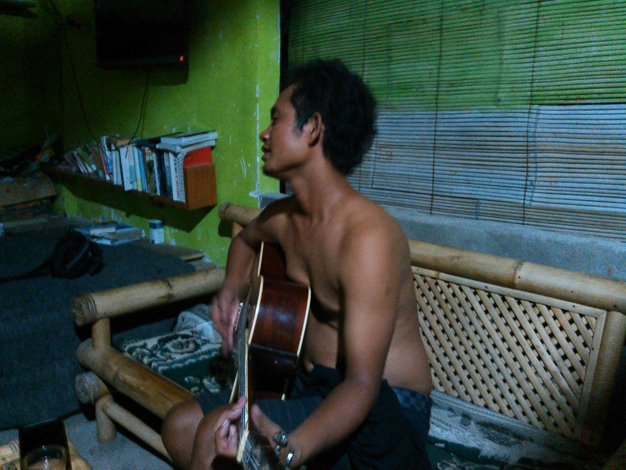 この方がインドネシア人のご主人さま。中庭にいる時はいつもギターを奏でています。
