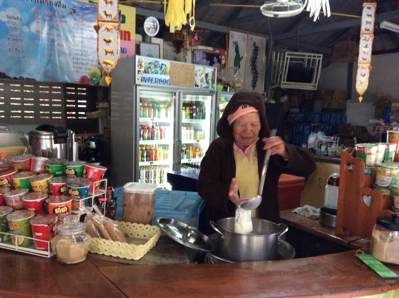 暖房がありませんので,毎朝このオバチャンの