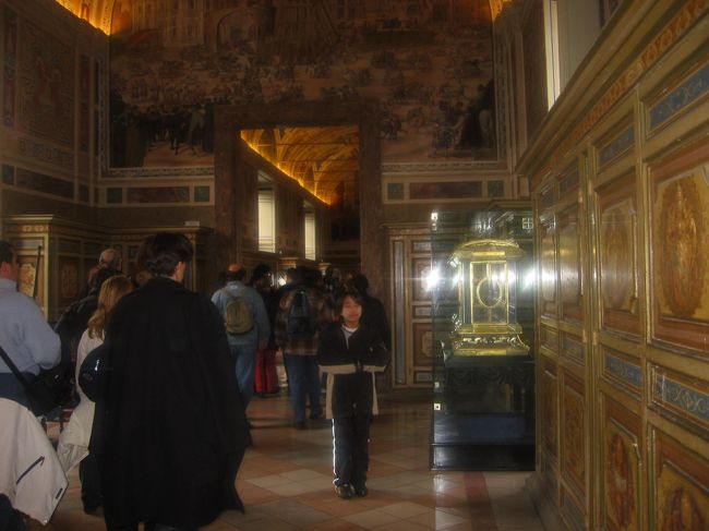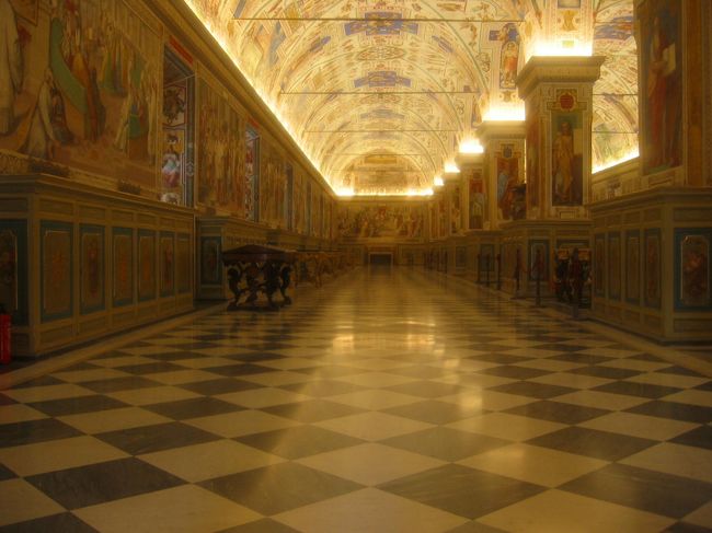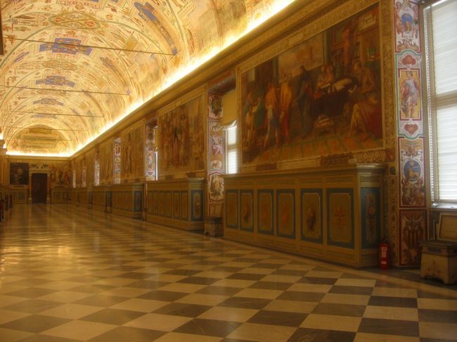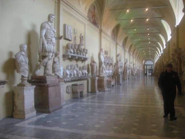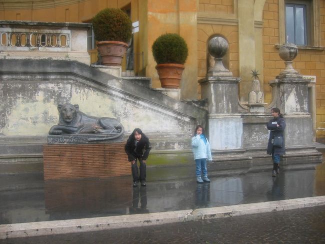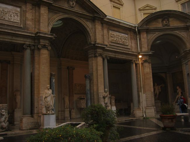翌朝、雨だったのでバチカンに行くことにしました。早めにいかないとバチカン博物館は並ぶと聞いたので8時ごろホテルを出ました。写真はバチカン美術館内の広場です。