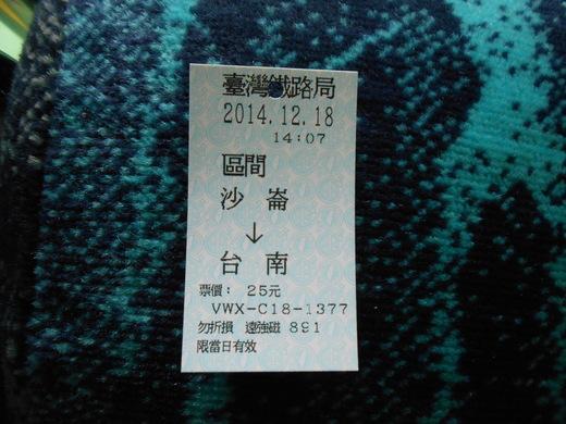 沙崙から台南までの切符。