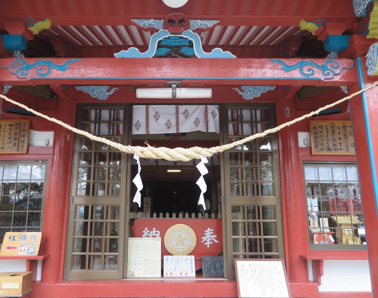 旧県社で社宝の銅製秋草双雀文様鏡は国の重文です。境内に日本一の大楠があります。