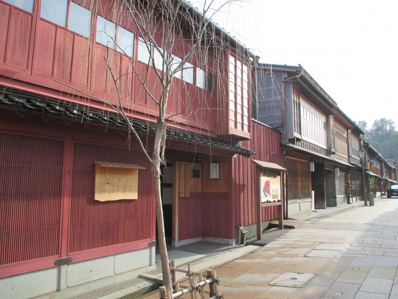 ひがし茶屋街に比べるとこじんまりとした茶屋街です。