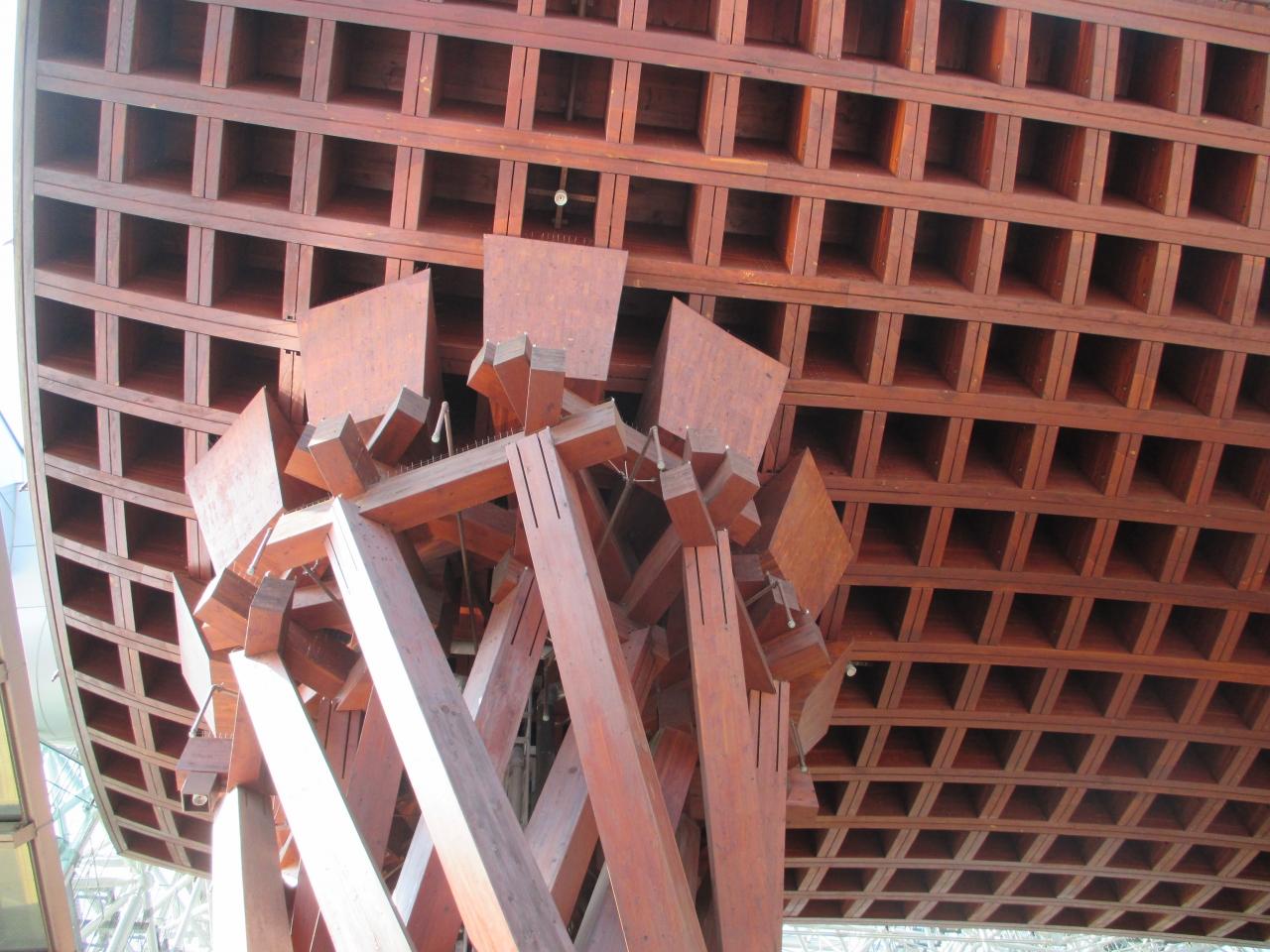 アルミ合金の立体トラスとガラスによる緩やかな曲線からなる日本最大級のドームで 雨や雪の多い金沢を訪れた人々に、そっと傘を差しだす金沢人のやさしさ、もてなしの心を表現するものとして建設しました。(説明板より)