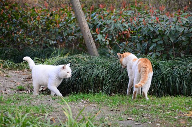 あんなところ(湖の真ん中の小島)に公園の主みたいな猫が!!
