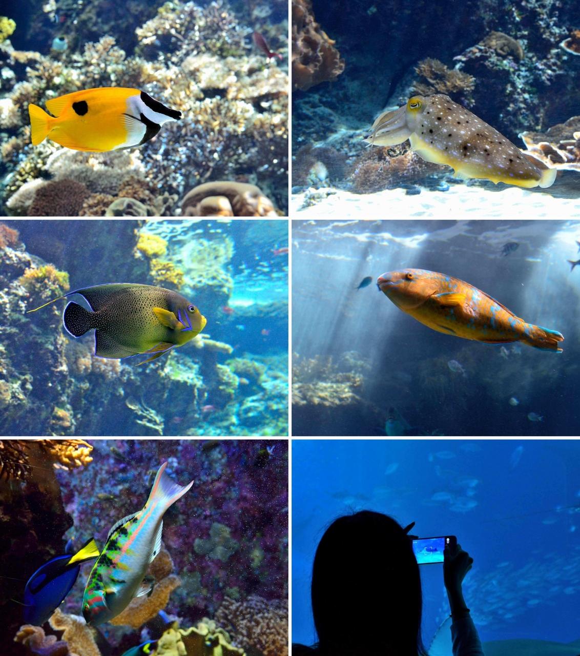 ジンベイザメ以外にも水族館の中は龍号城の様に、綺麗な色の熱帯魚?が沢山見る事ができました。