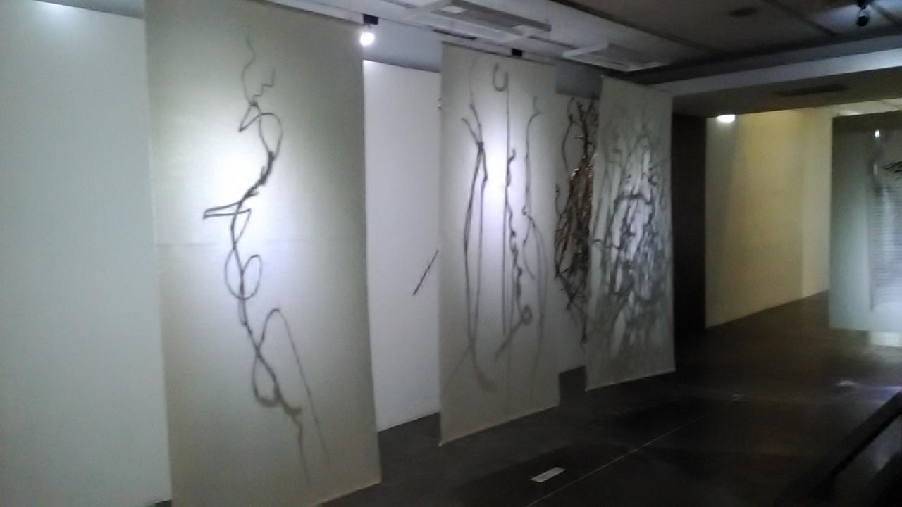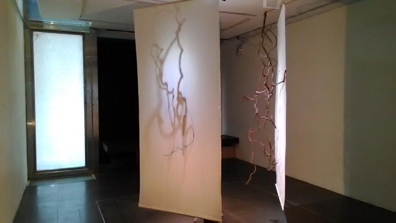 1階は紙製品の販売と奥で紙漉きの実演を。2階・3階は作品の展示で