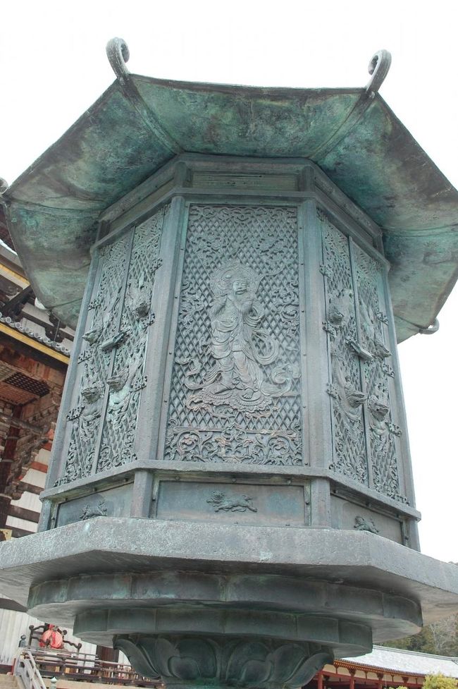 修二会での松明の重みでしょうか?黒くなって削れています。