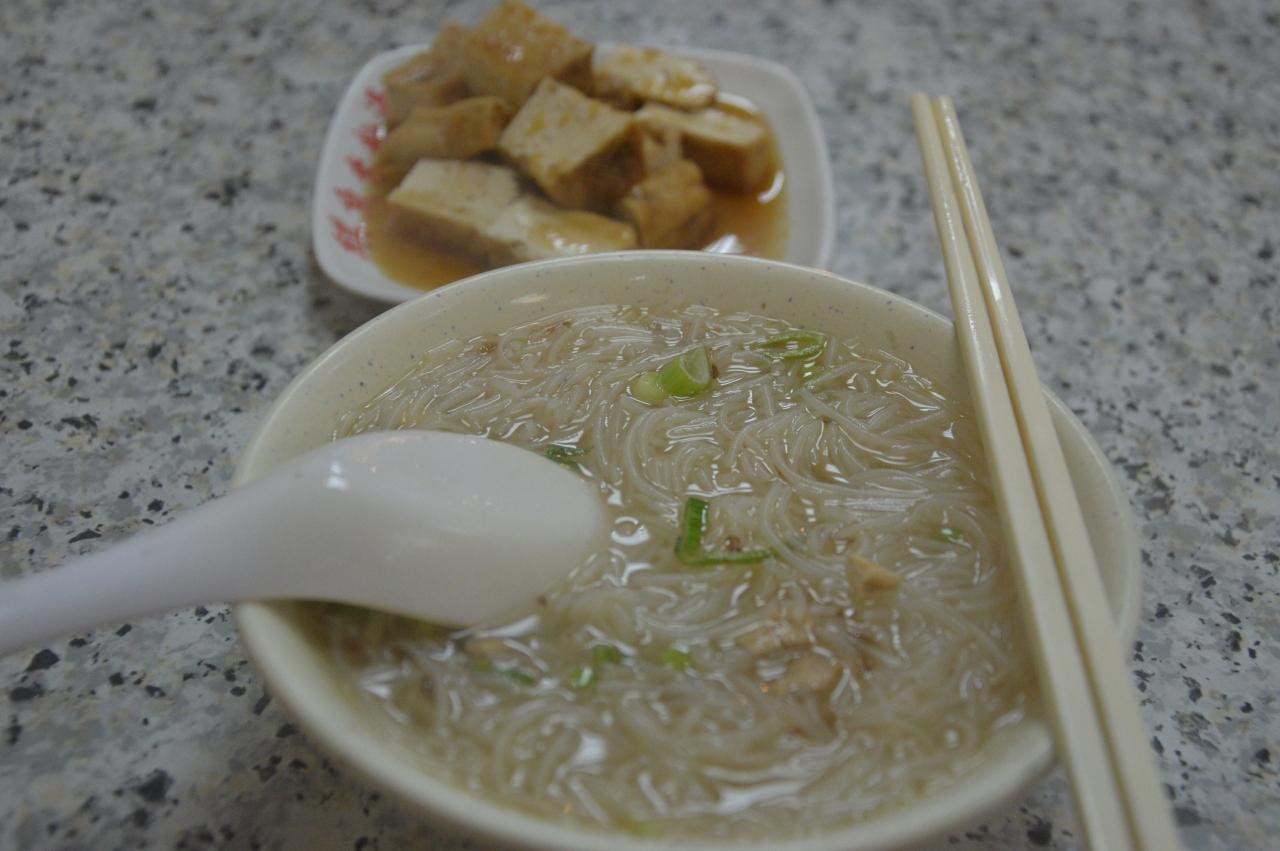 たぶん、魚の出汁でとった米麺とお豆腐です。なんだか懐かしい味がして落ち着きました。 -