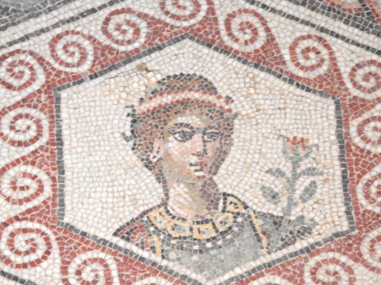 愛の寝室。六角形のモザイクは、四季を表す。こちらは春。手に花を持つ。