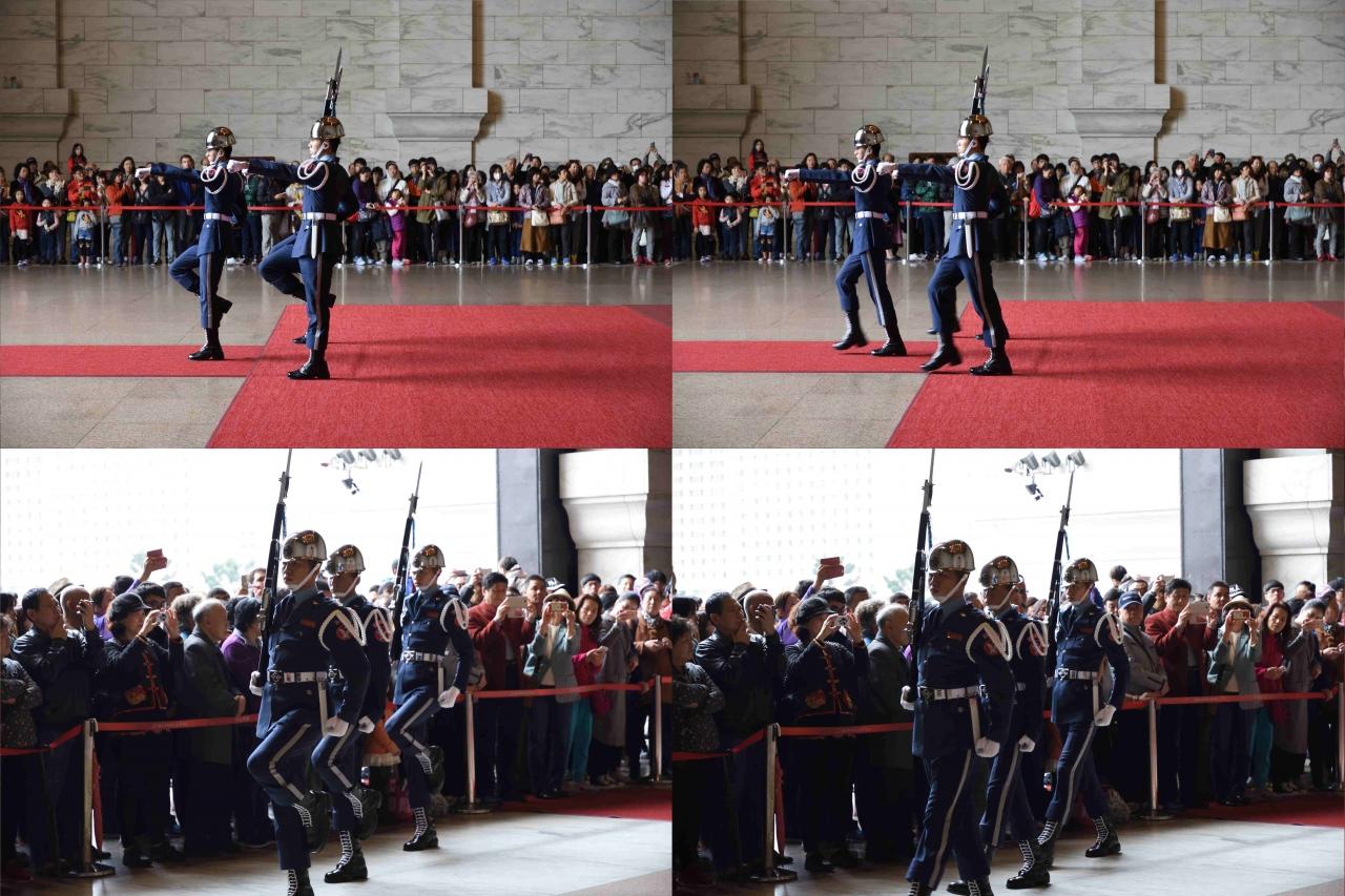 蒋介石像の前には衛兵が2人立っています.微動だにしません.