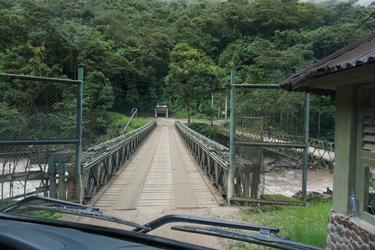 現代の恵まれた条件でもバスはこんなボロい橋を渡って奥に進みます。