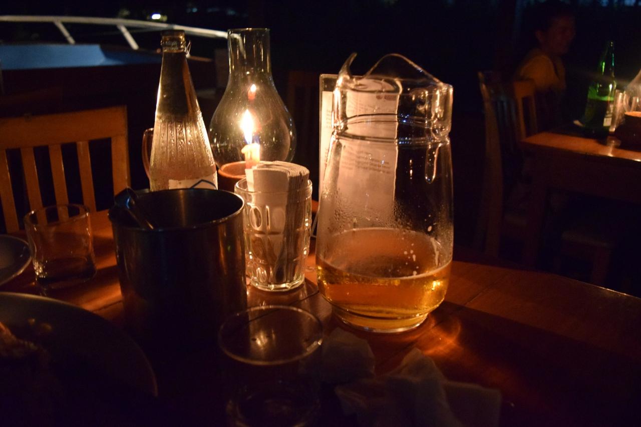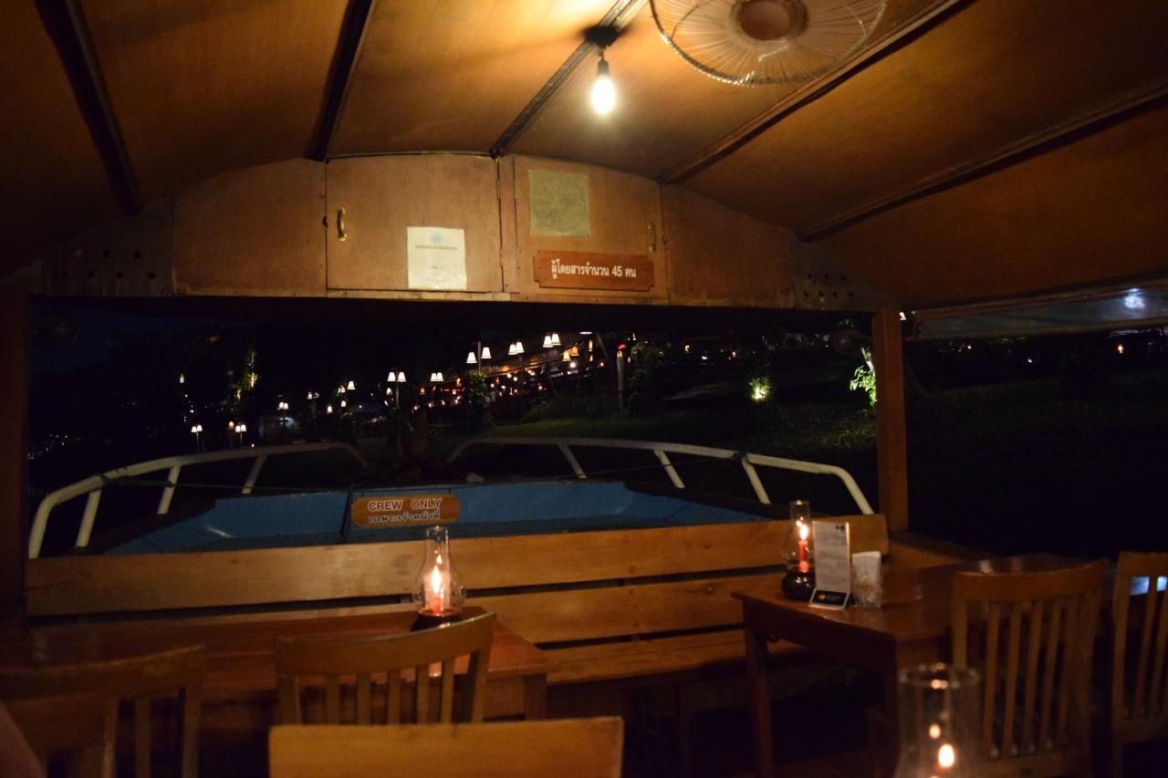 ボート内は、暗くなりランプがテーブルに運ばれてきました、ろうそくの明かりが灯ります。 -