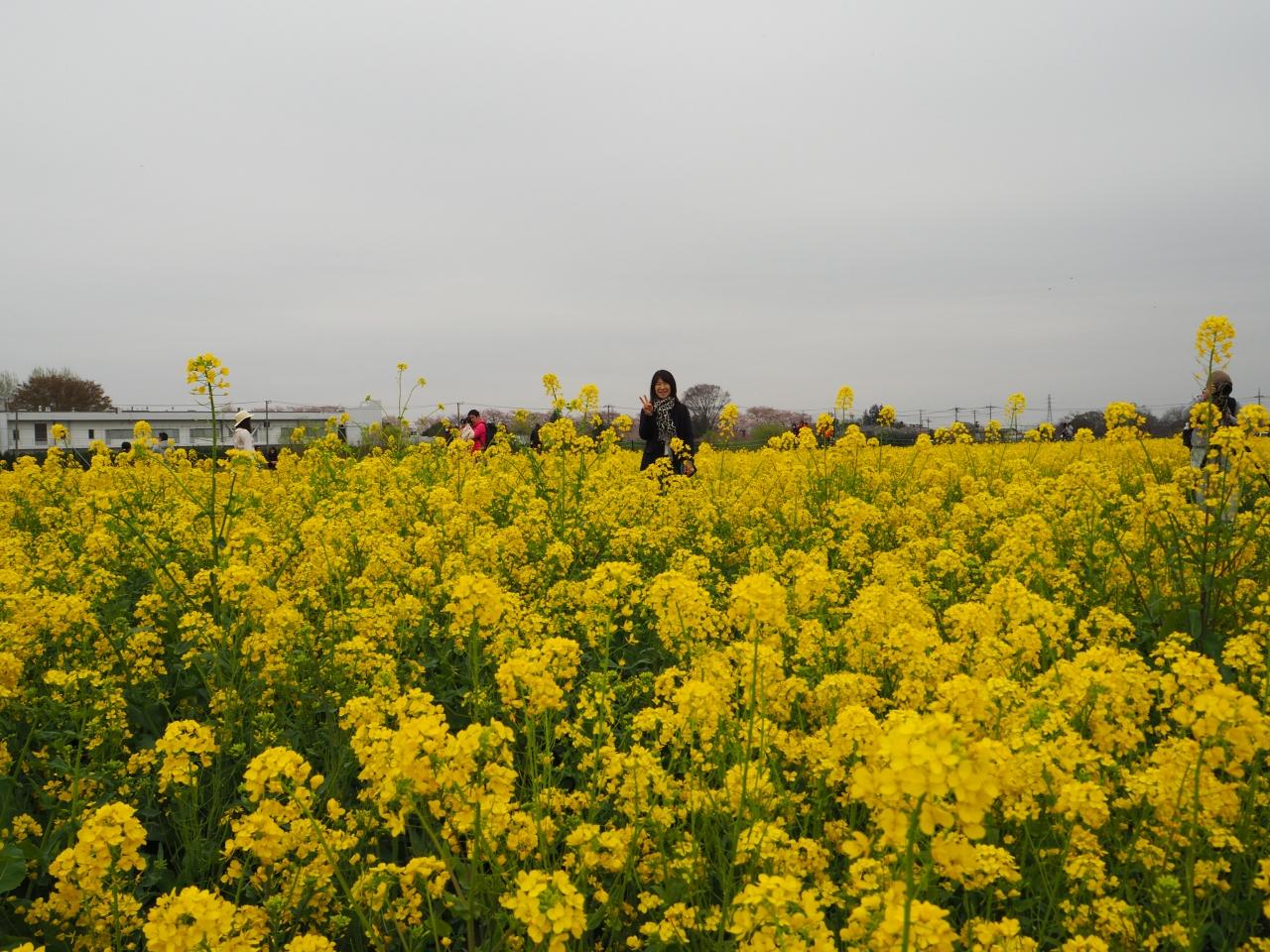 周辺には菜の花畑が広がり、桜のピンク色と菜の花の黄色とのコントラストは見事です!