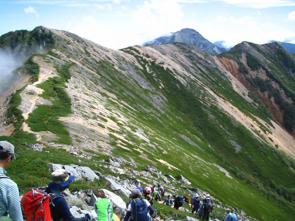 大天井岳、常念岳に続く稜線は、槍・穂高への大展望を望む気持ちの良いルート。