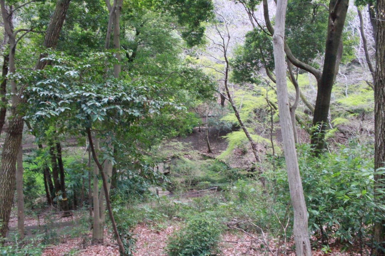 公園の一番奥は小田急線の線路まで。その手前に湿地がある。