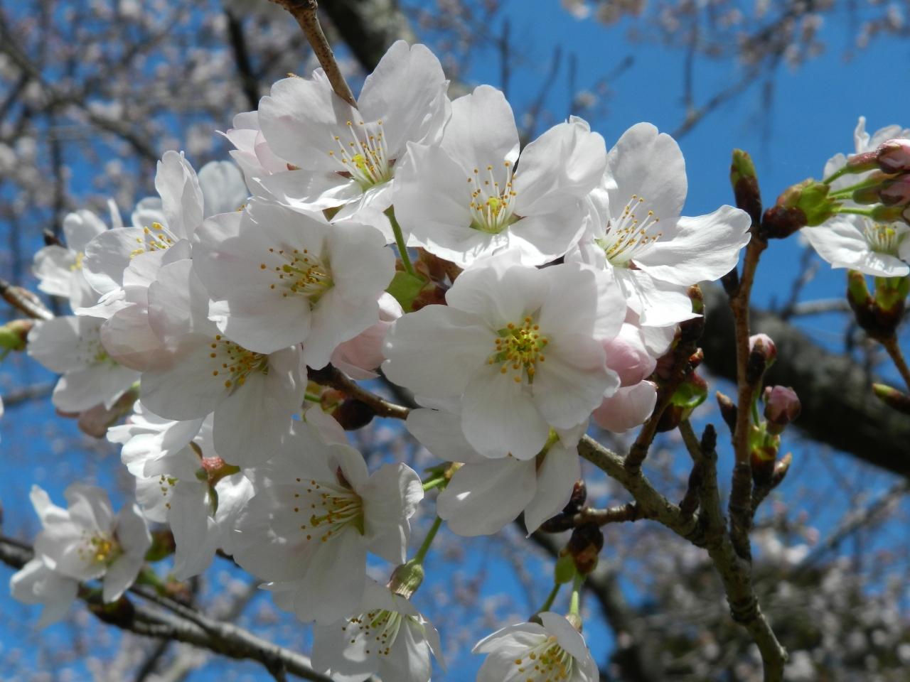 向こうには桜のピンク色も見えるはずなのですが、まだ咲き始めのようですね...