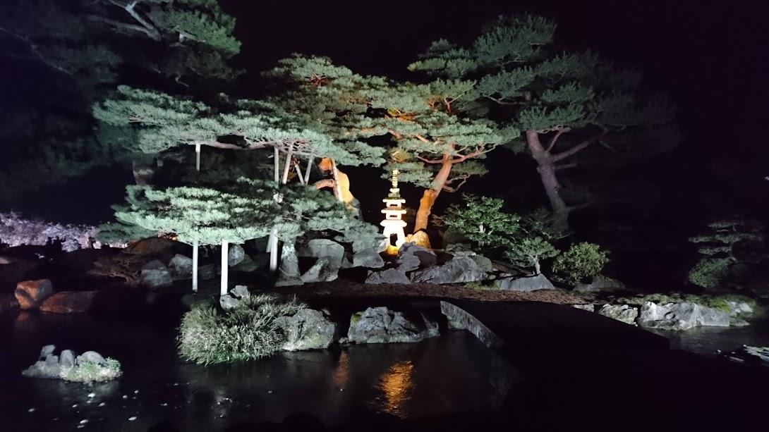 松と灯篭のライトアップです。桜以外も綺麗な場所が多い。