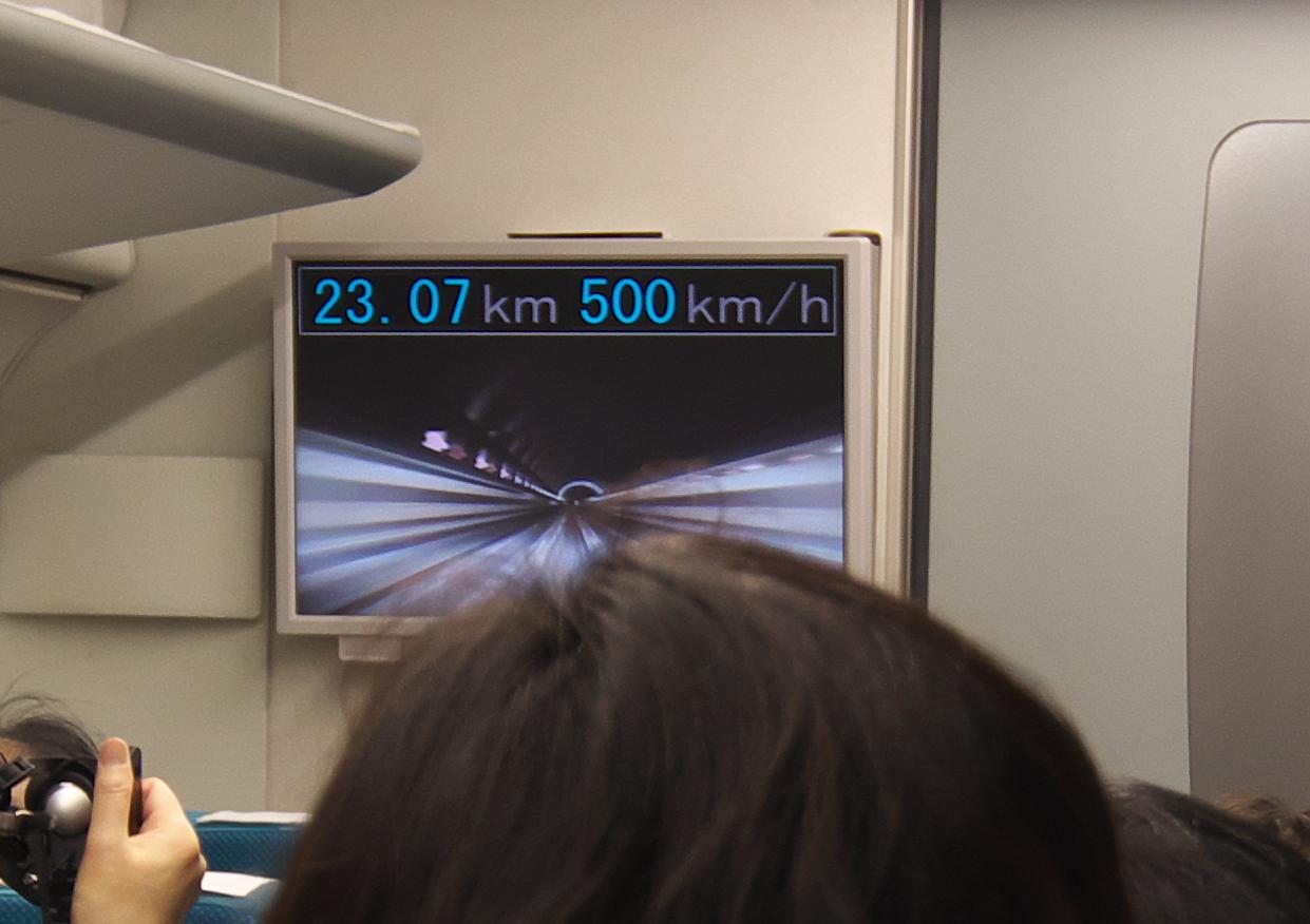 スムースに静かに走行しているので特に感激はありません。新幹線より速度がはるかに早いので、音、揺れは新幹線より少しあります。営業運転時には解消されているかも。
