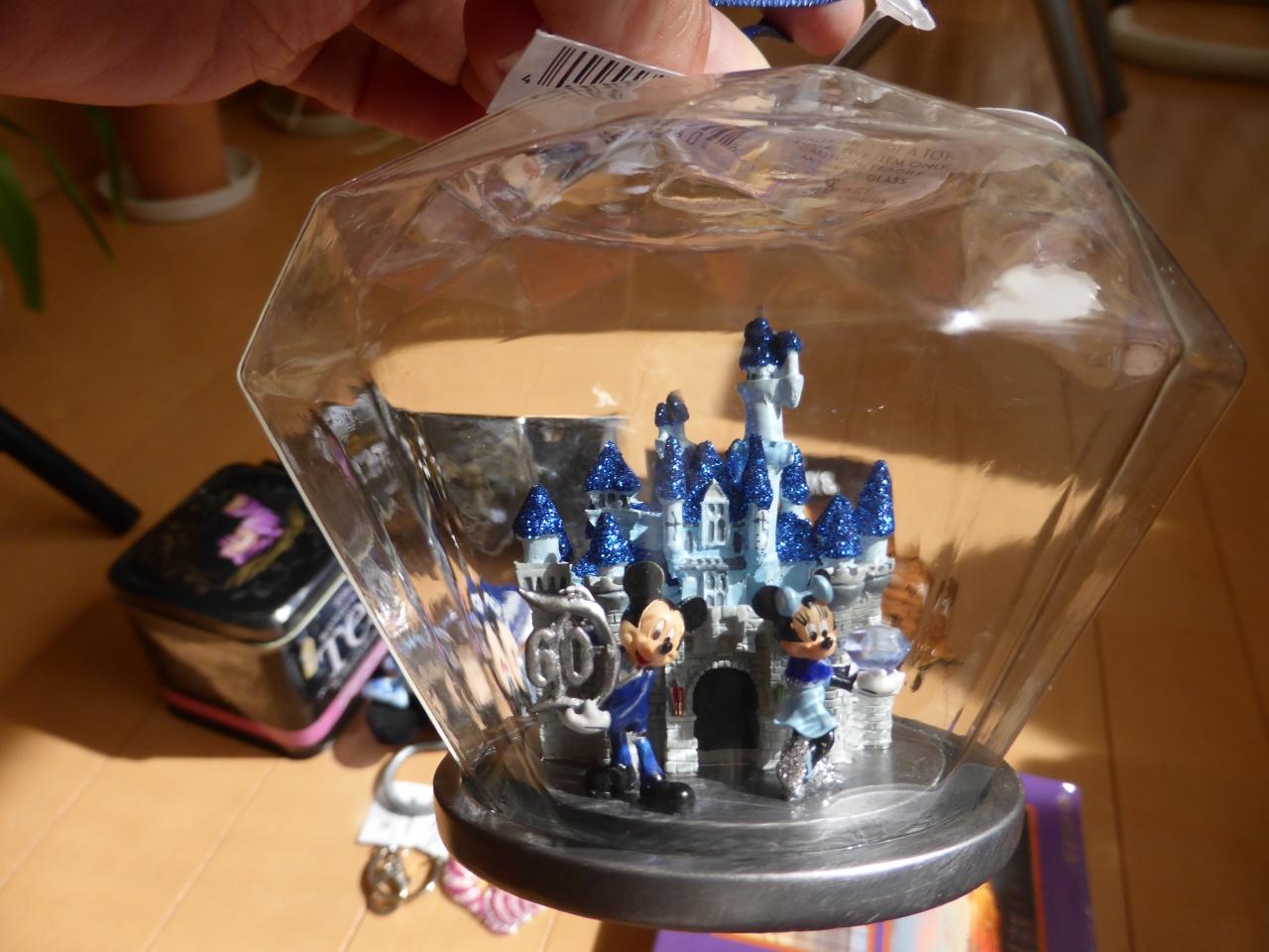 クリスタルの中にシンデレラ城とミッキー&ミニー