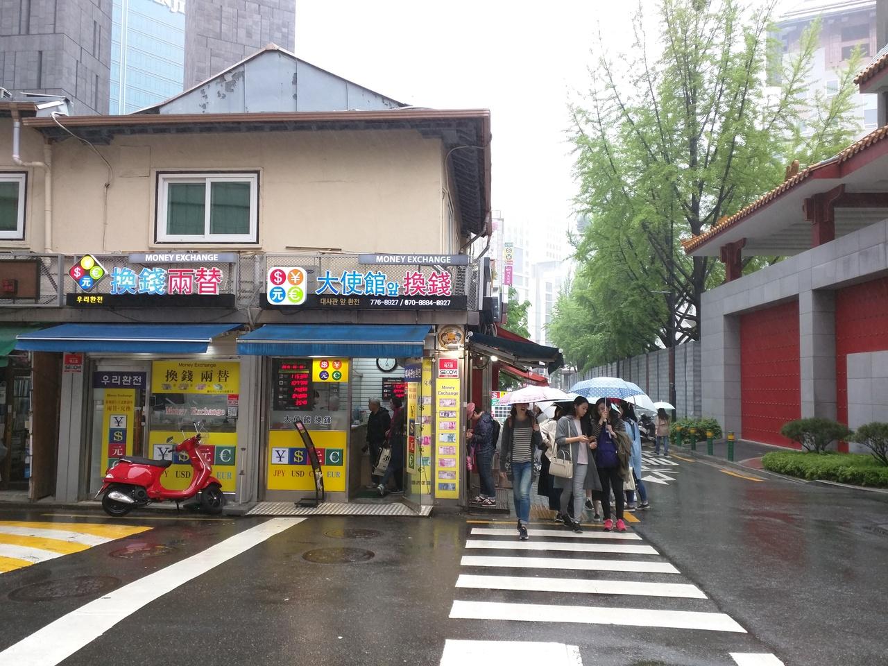 到着早々、毎回利用の明洞の大使館前両替所へ