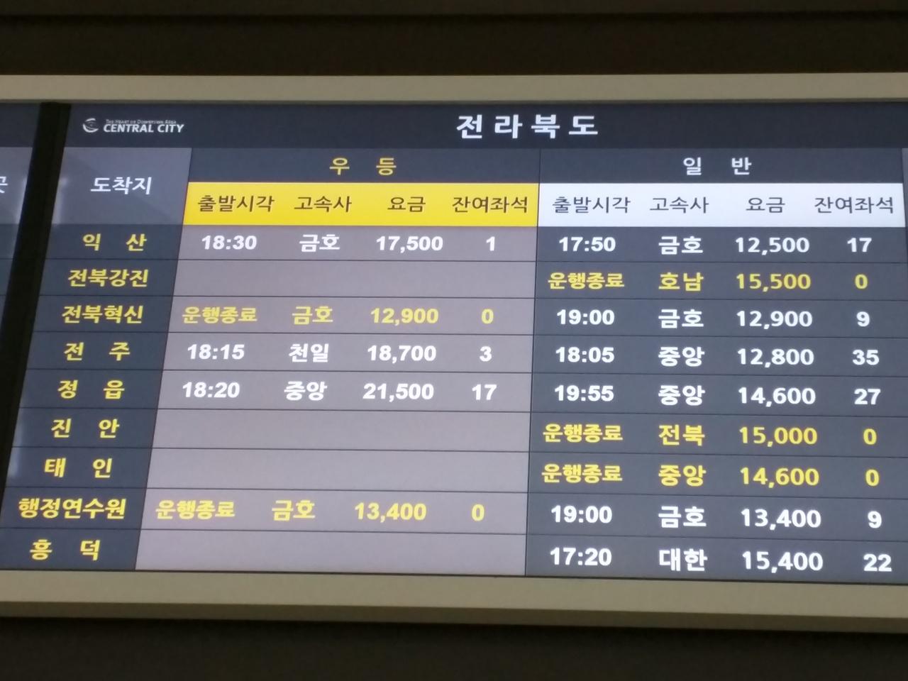 全州行き 18時15分発