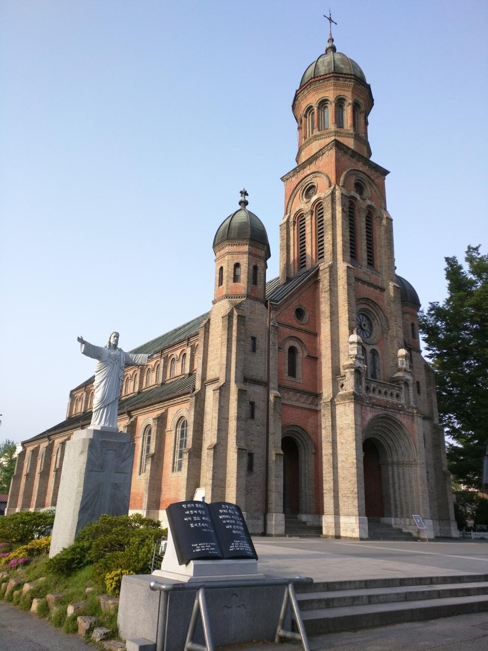周りの雰囲気とはガラッと違う教会がドン!と慶基殿の正面に建ってます