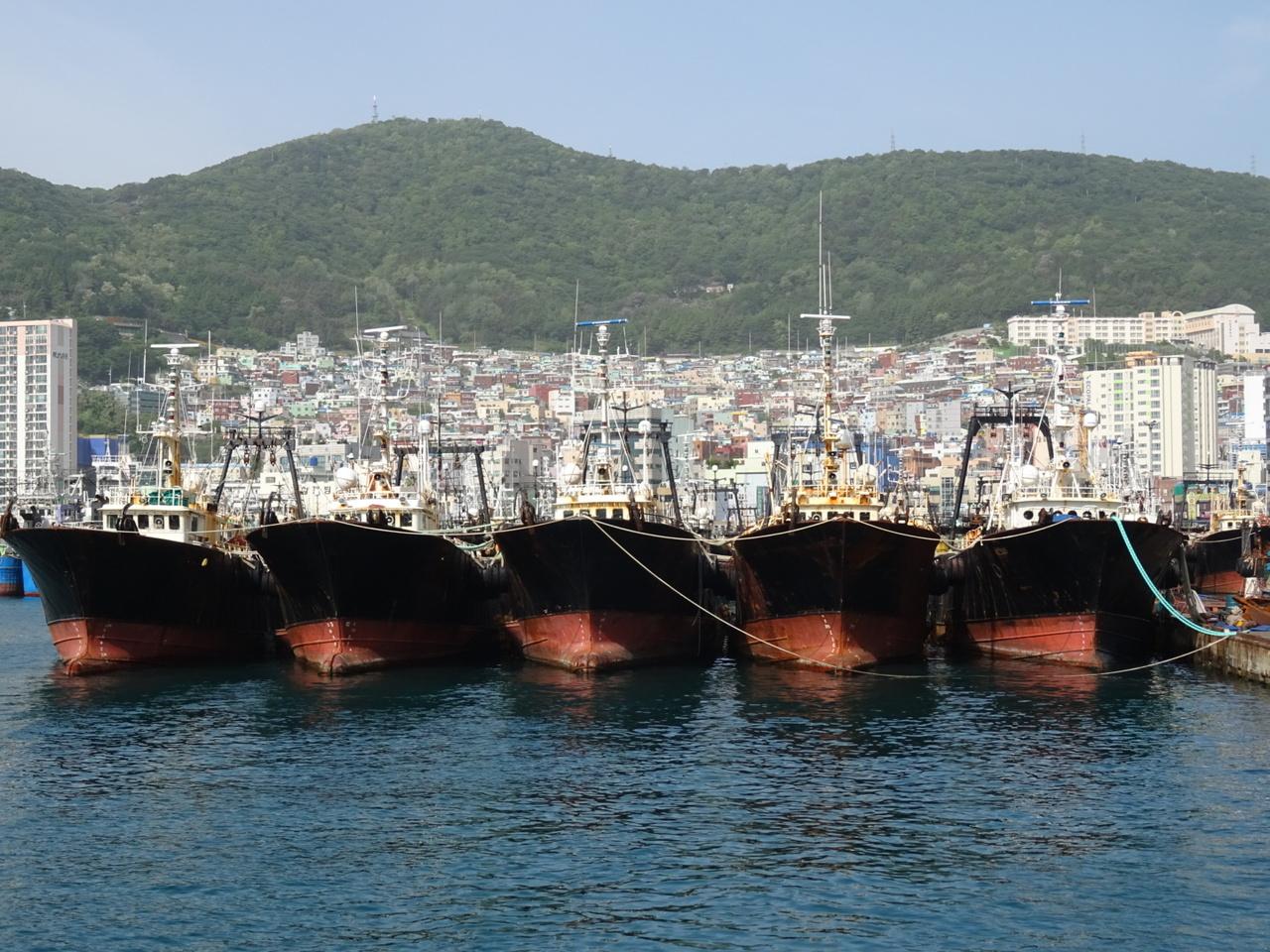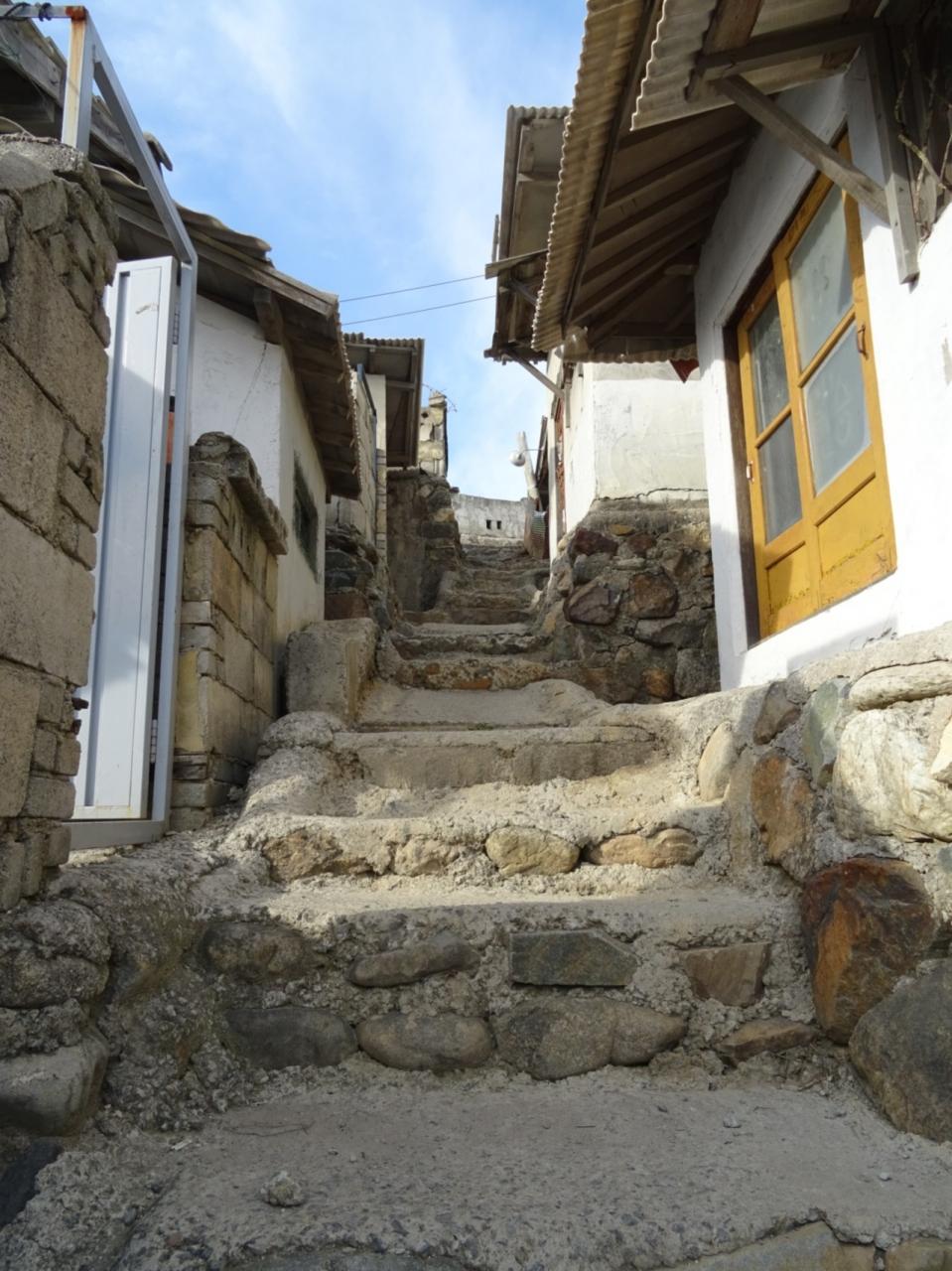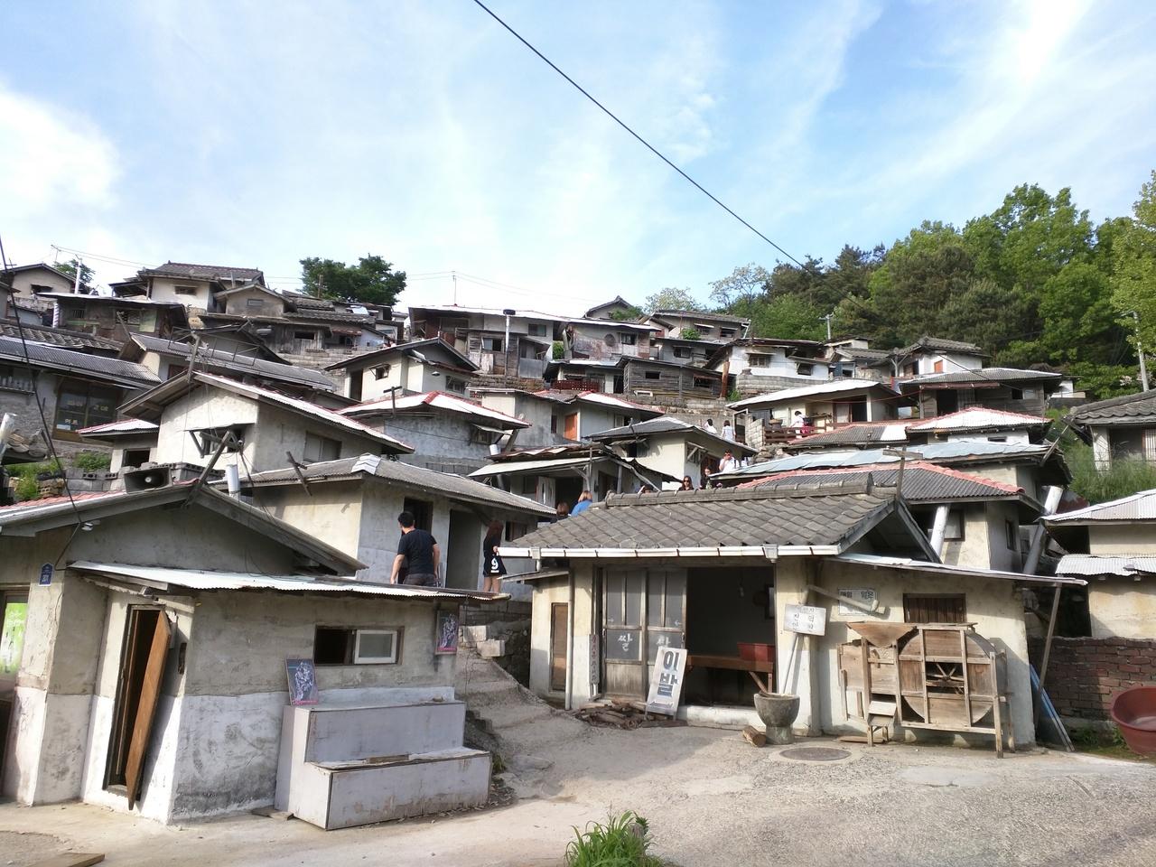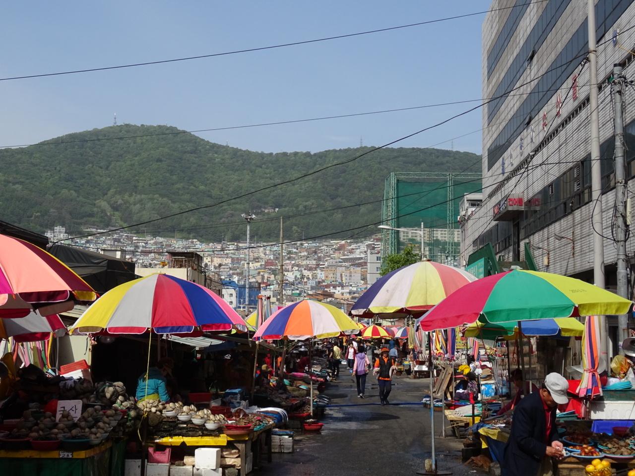 市場から見る釜山の斜家