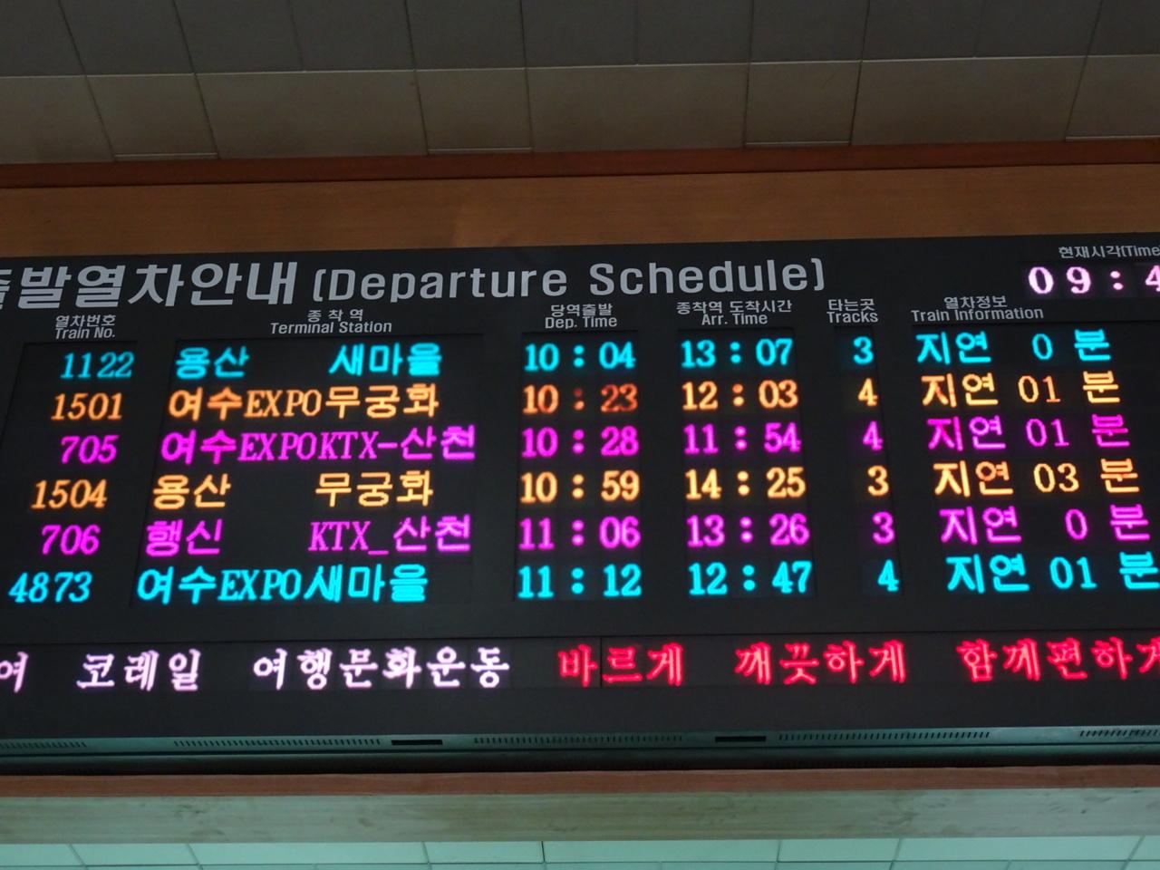 (麗水方面の列車は本数が少ない) -