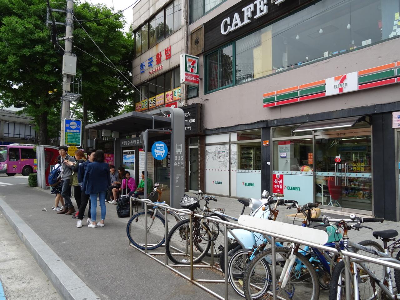 来た時に降りた向かい側から、また77番のバスにて順天駅へ