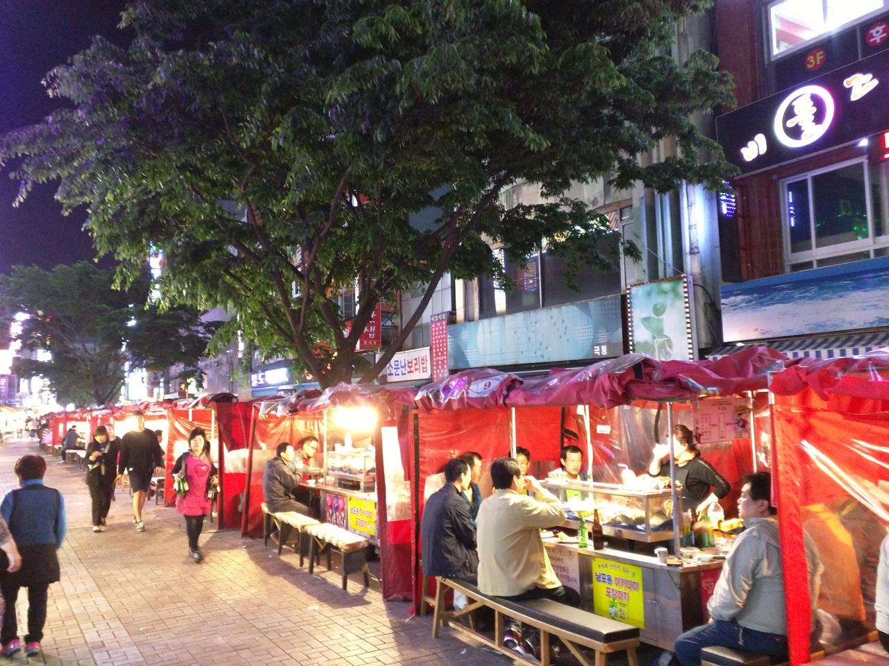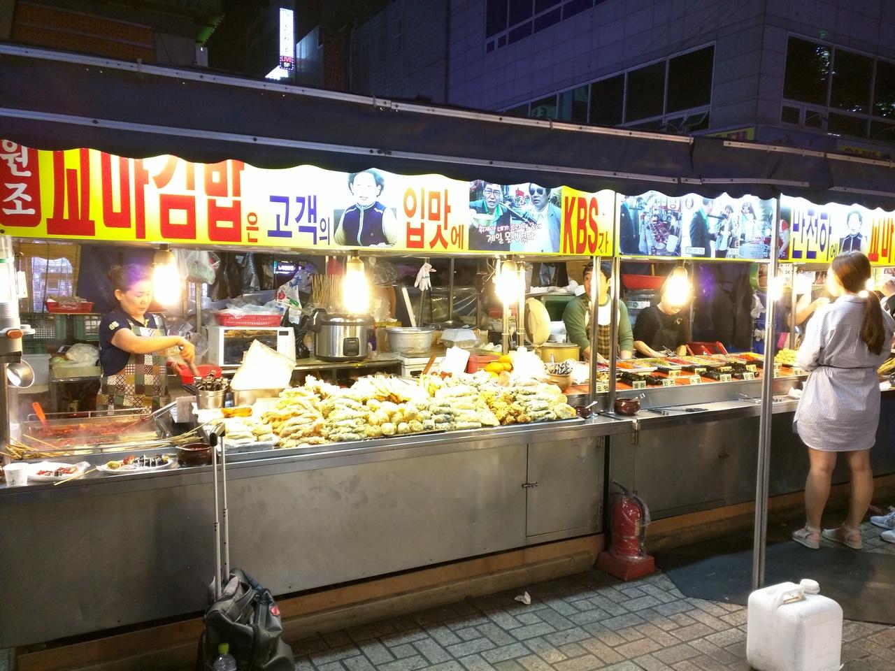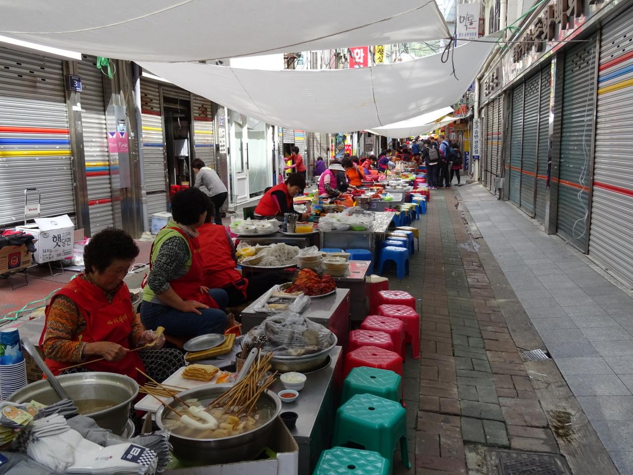 釜山バスターミナルを出て、向かったのは夜遅くまで賑やう富平市場近辺