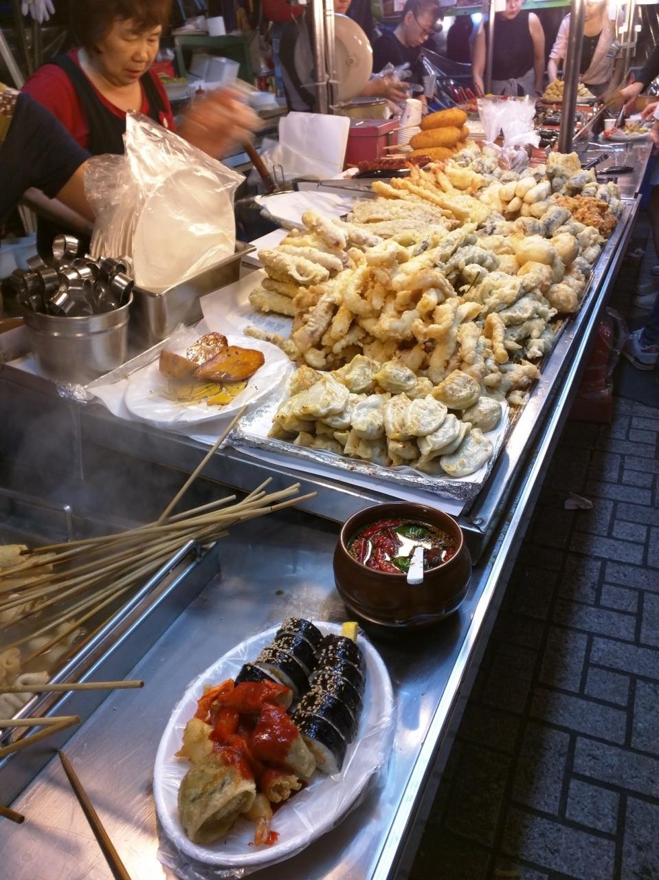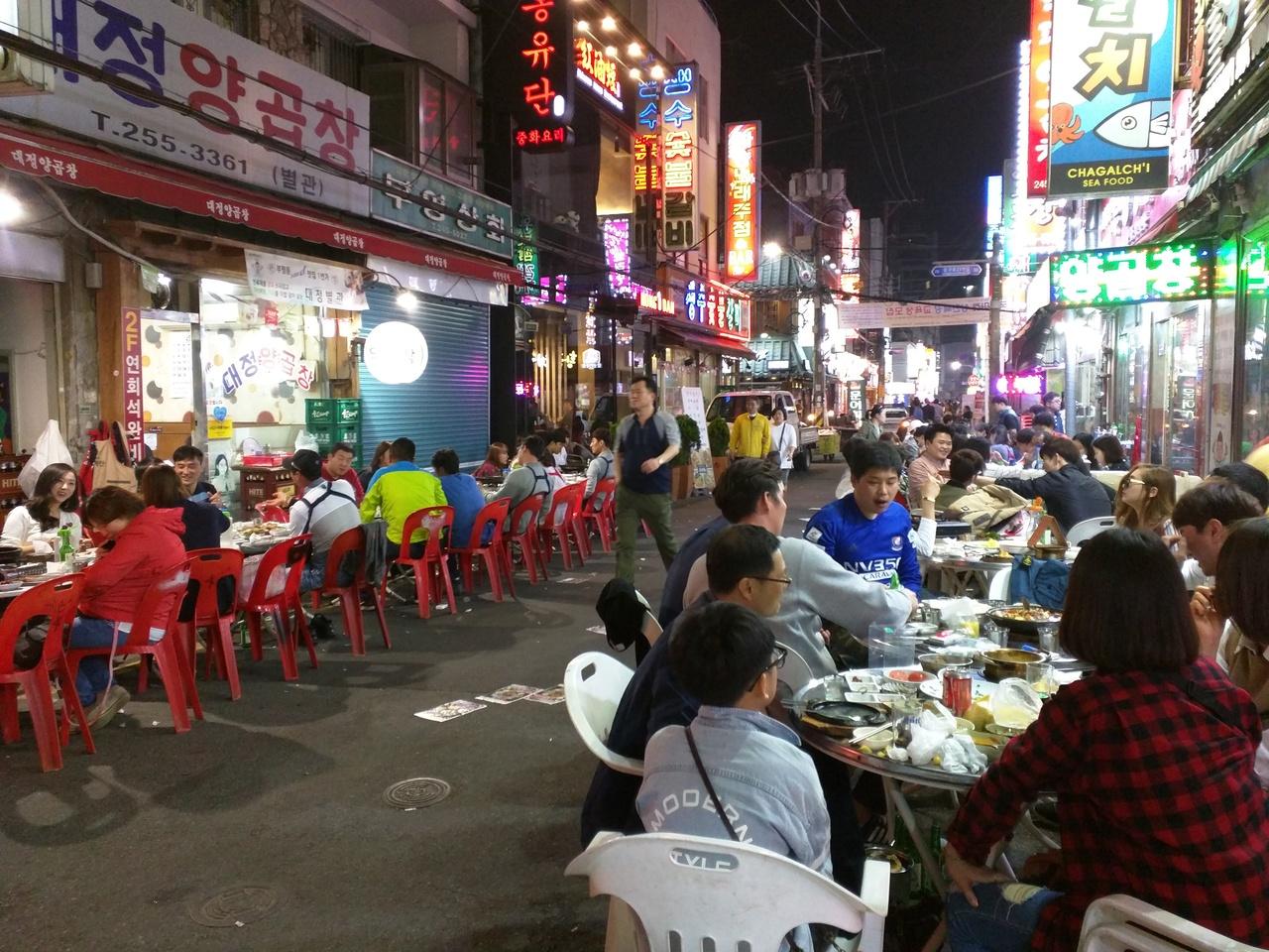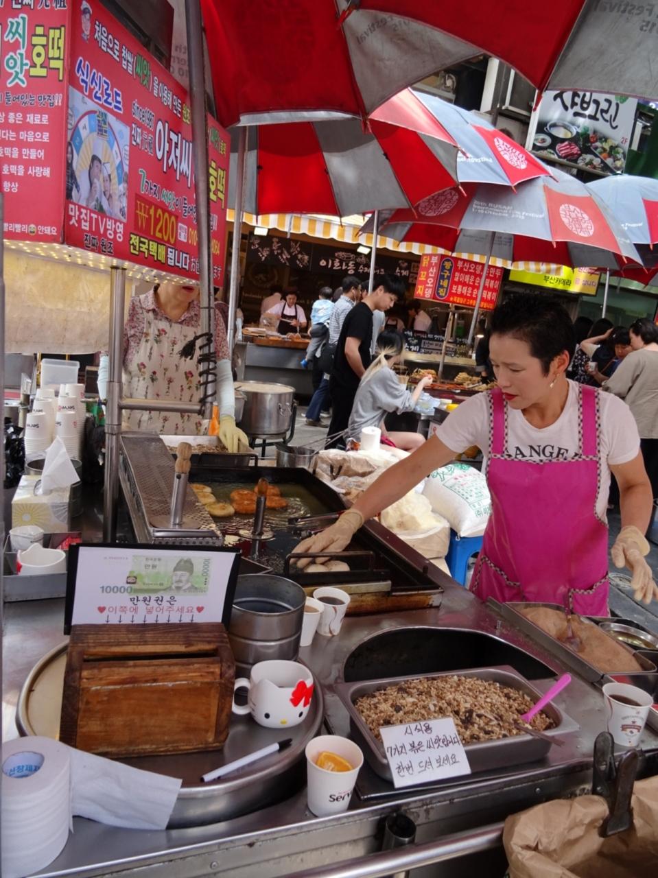 釜山バスターミナルを出て、向かったのは夜遅くまで賑やう富平市場近辺
