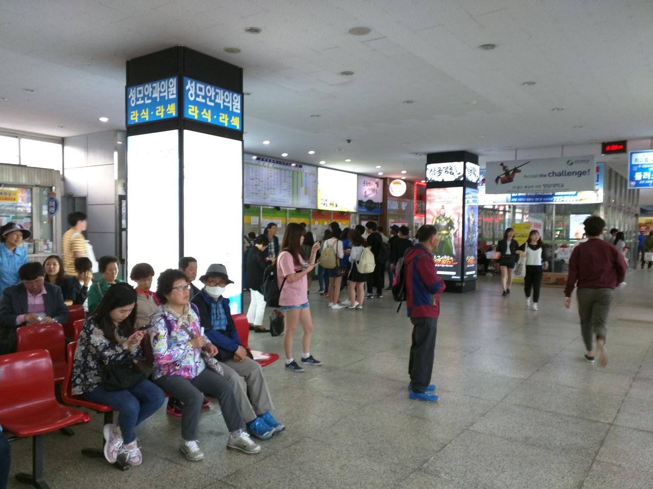 沢山の人!韓国のバスは、本数も多く安価なので利用客も多い