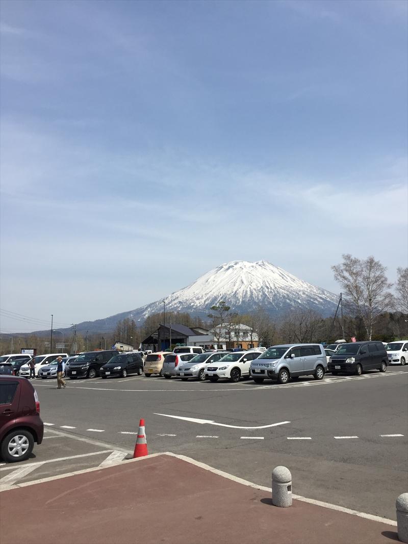 峠は標高が高いので雪がまだ残っています。羊蹄山が綺麗に見えます。