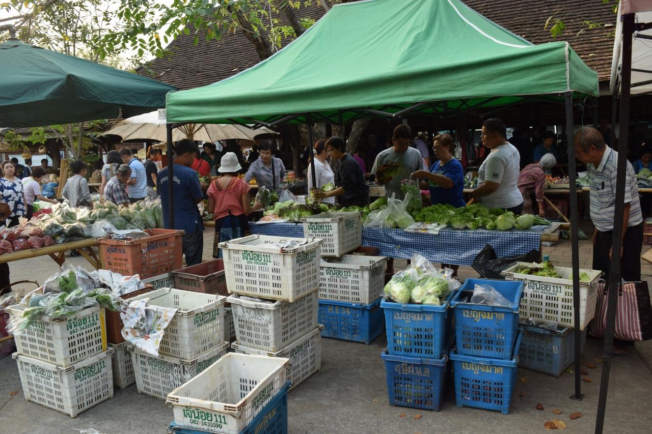 バンコクにも同名のJJマーケットはあるが、チェンマイのJJは、オーガニック野菜を農家が直営販売している土日の朝のみのマーケットです。