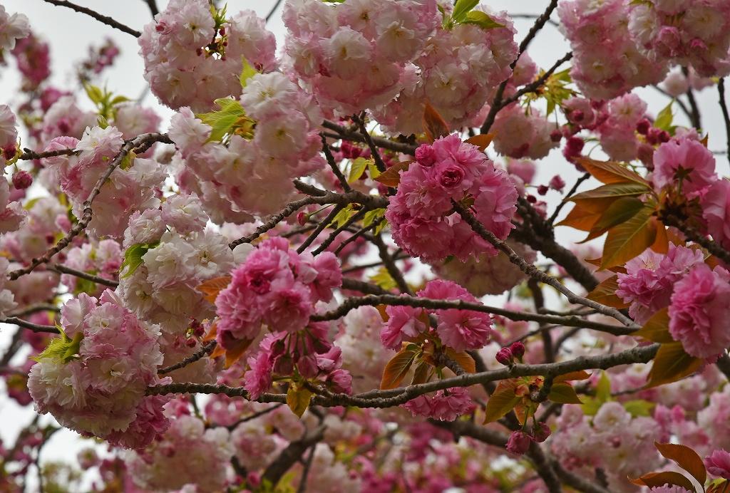 公園内は広い。八重桜のゾーンは限定されているが、沢山の種類の樹があるので、色も白・薄いピンク・濃いピンクと変化に富んでいる。