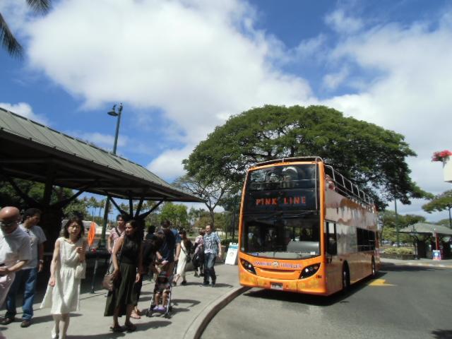 久々二階建てバスのピンクラインに乗ってワイキキへ。