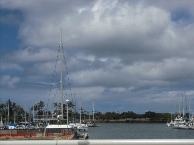 アラモアナセンターからアラワイ運河通り過ぎる所です。ヨットハーバーが見えてきます。