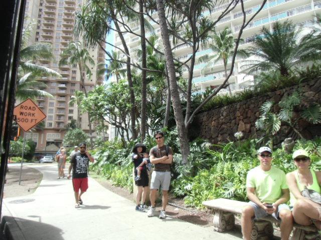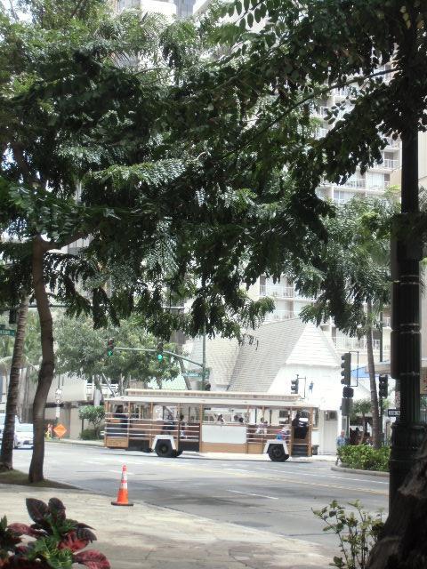 二階建てバスは何故か心が弾みます。良い風吹かれながらワイキキまでドライブ?