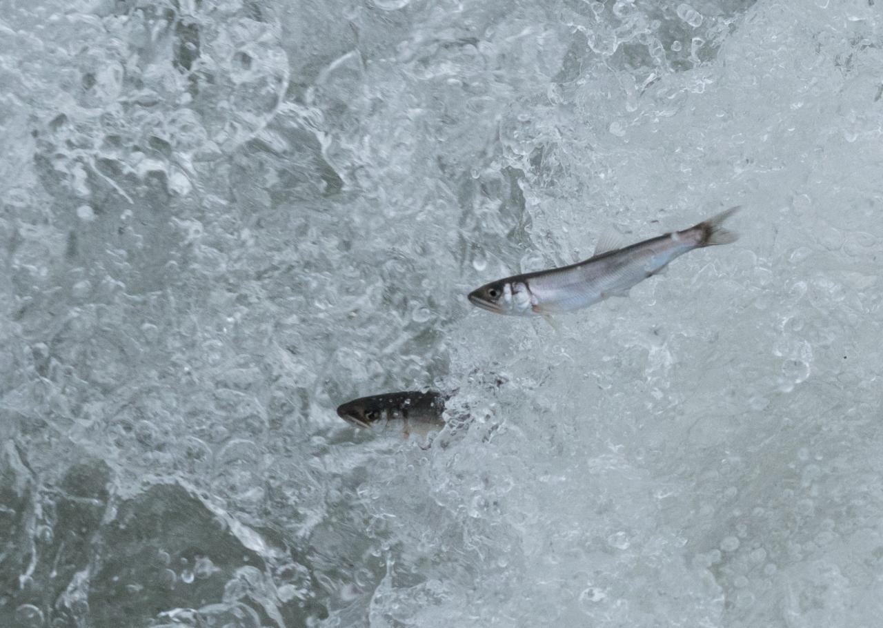 それでも、何度でもジャンプを繰り返す。試練に立ち向かう稚鮎に、思わず「頑張れ!」と応援したくなるような気持にさせられる。