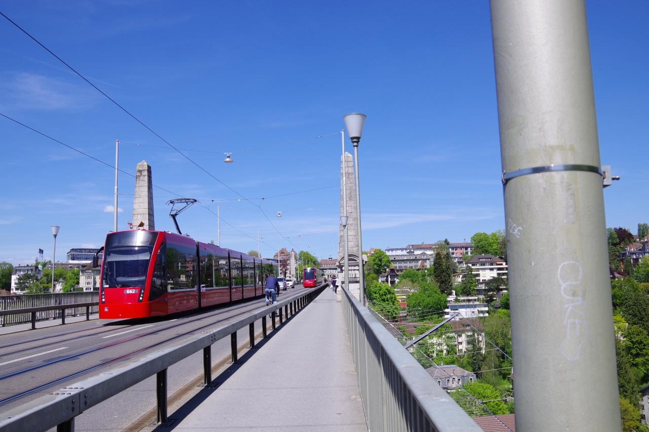 ベルン・チケットも手に入ったことだし、またトラムに乗って駅方面へ〜。 行き先の違うトラムが同じ電停に到着するので、車体や電光掲示板に書かれた行き先を確認してから乗り込みましょう!