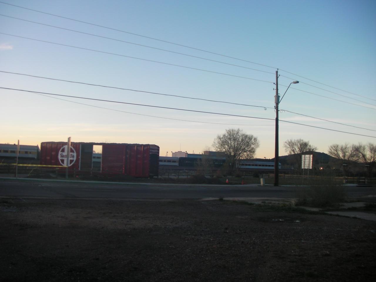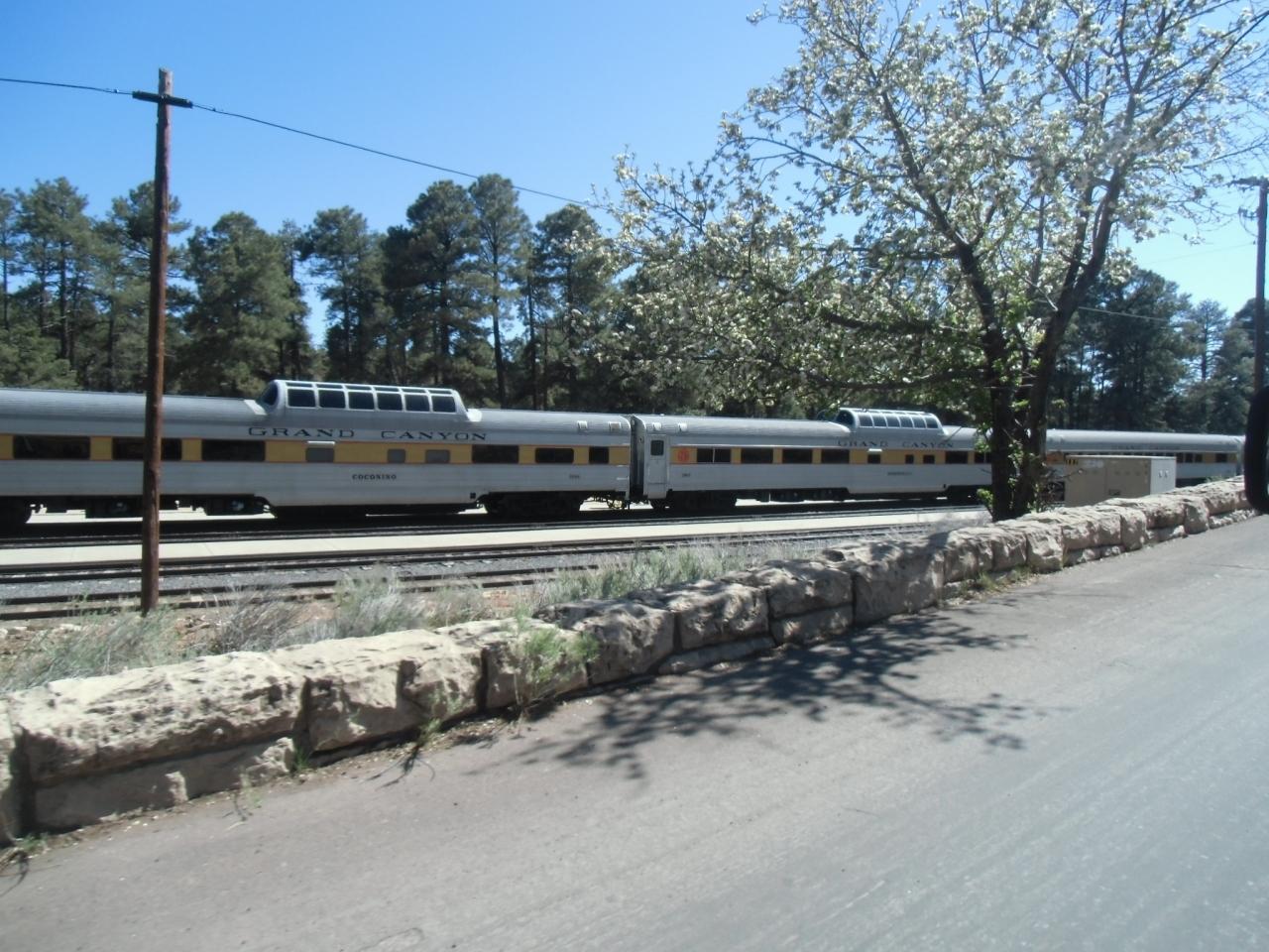 グランドキャニオン鉄道と駅。駅舎はちょこっとだけ写ってました。