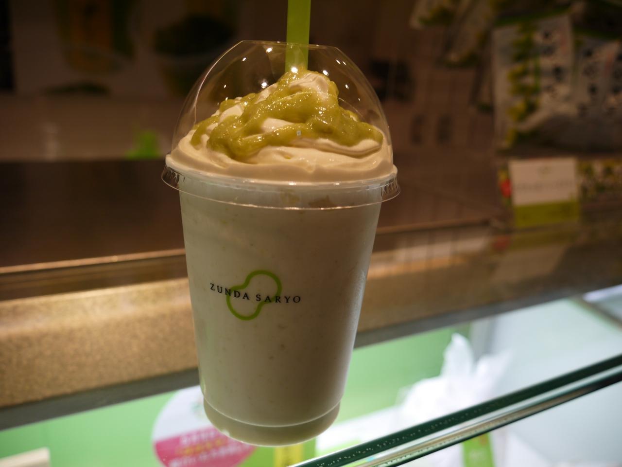 羽田空港に到着後、4階にある「ずんだ茶寮」に行って、期間限定の「ずんだシェイクエクセラ」をいただいて来ました。ずんだ好きにはたまらない逸品。一気に飲み干してしまいました。【21:24】 -