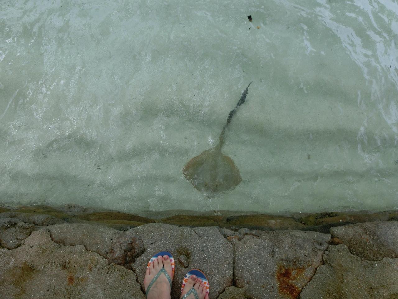 早速海へ!シュノーケルなら一番オススメと言われたメインジェッティの横から入って水上コテージ方面へ。