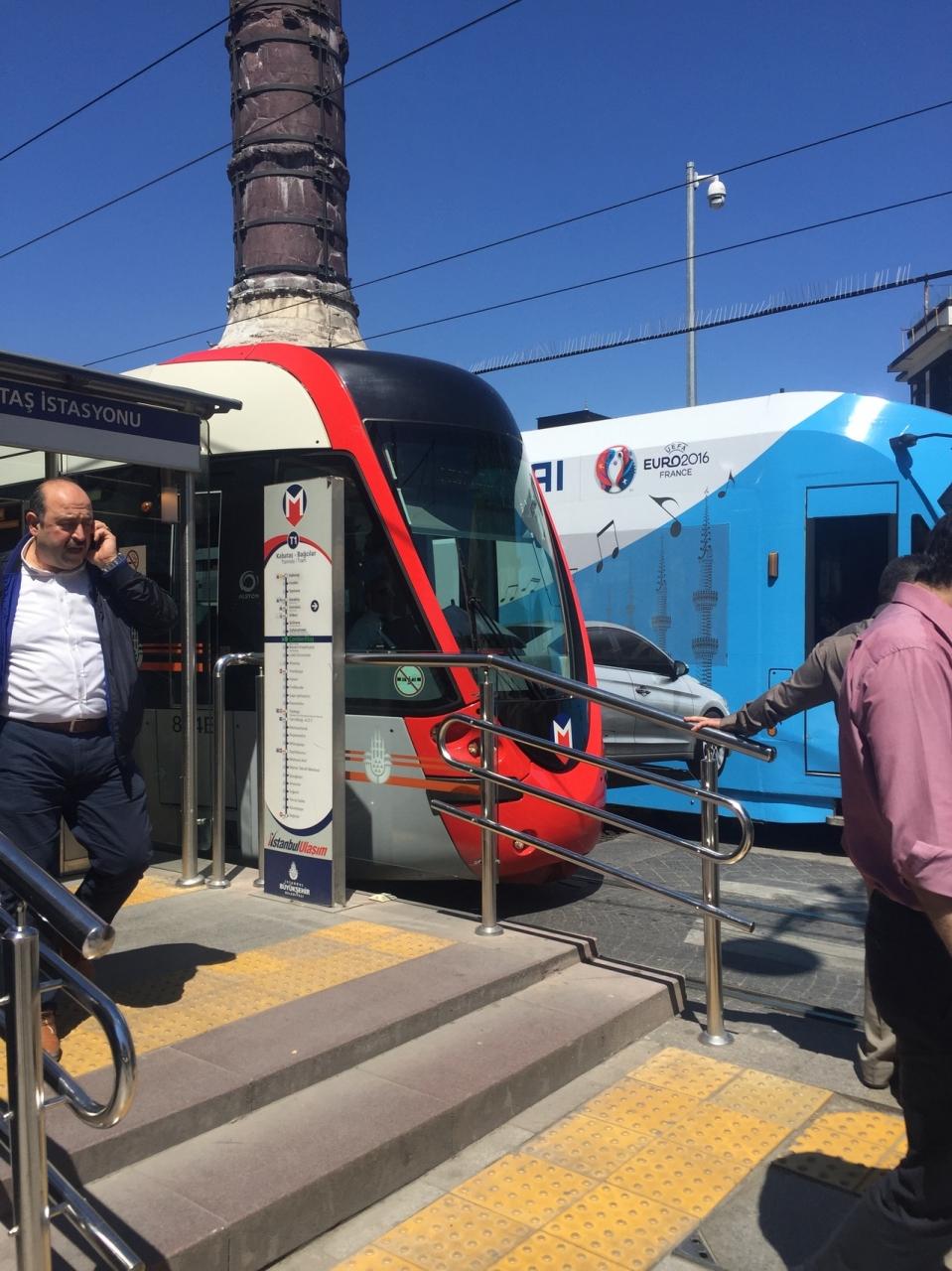 ホテルの近くのトラムの駅はチェンベルリタシュ。ここでイスタンブールカードを買おうと迷っていると日本語の出来るトルコ人が買い方を