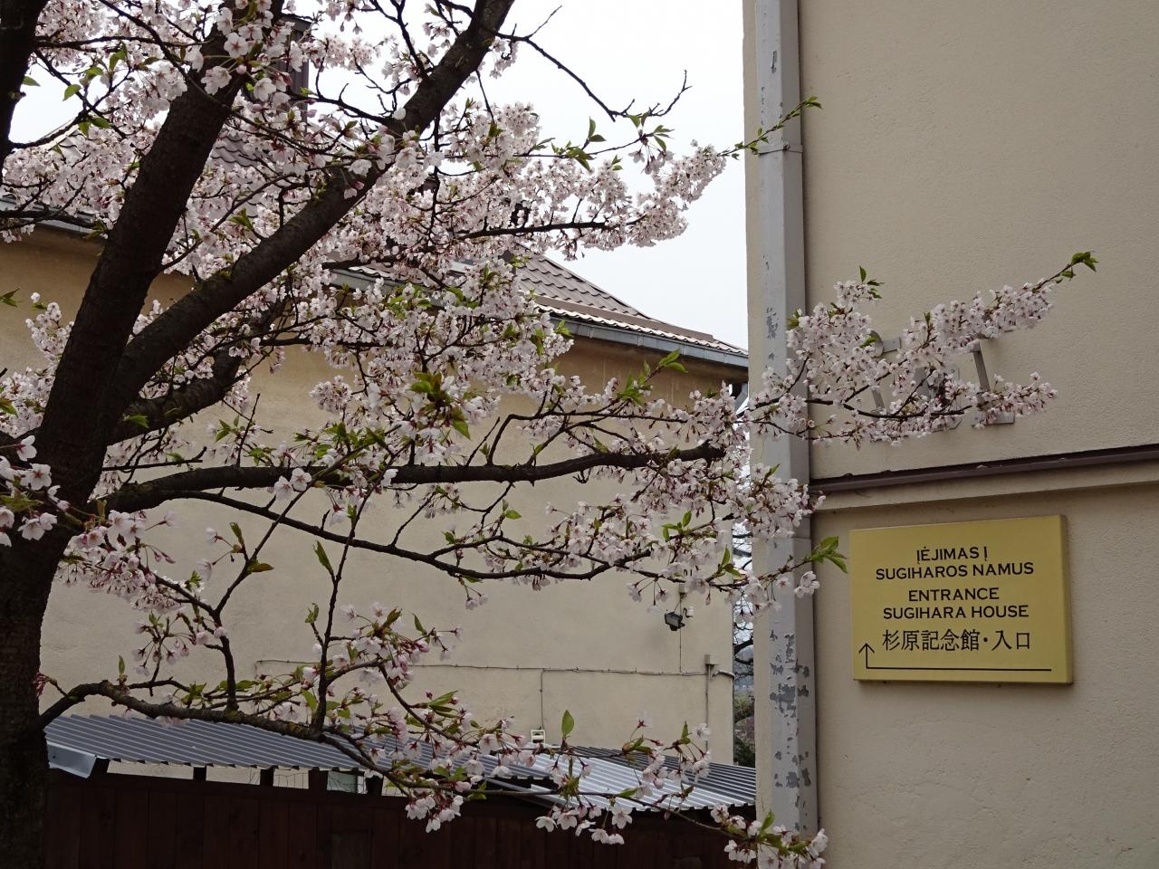 かつての日本領事館、杉原記念館の前には桜の木が植えられていました。しかも散り始め! -