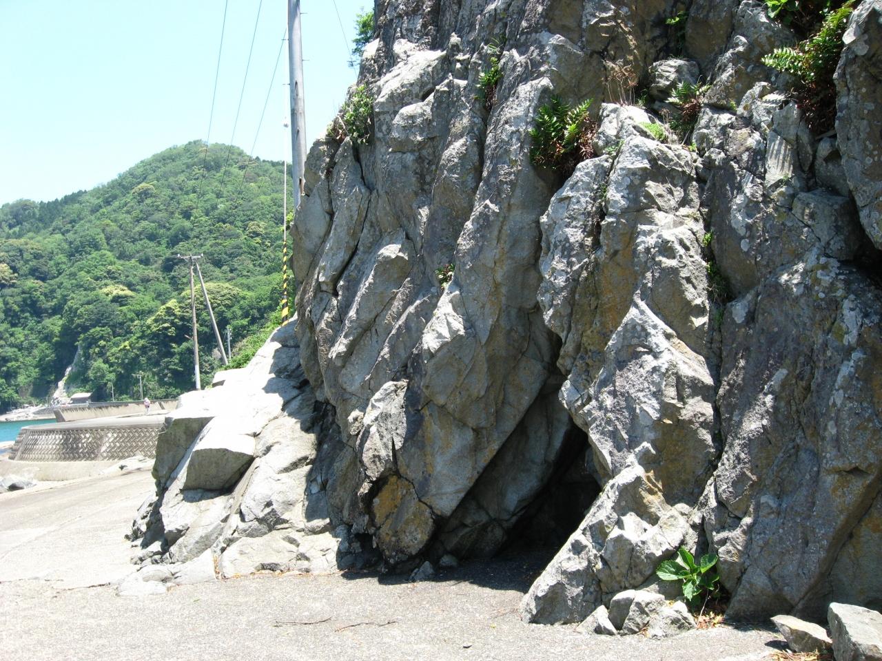 安山岩質の溶岩や火砕岩(約2000万年前)が浸食された小島の点在する磯浜。 -