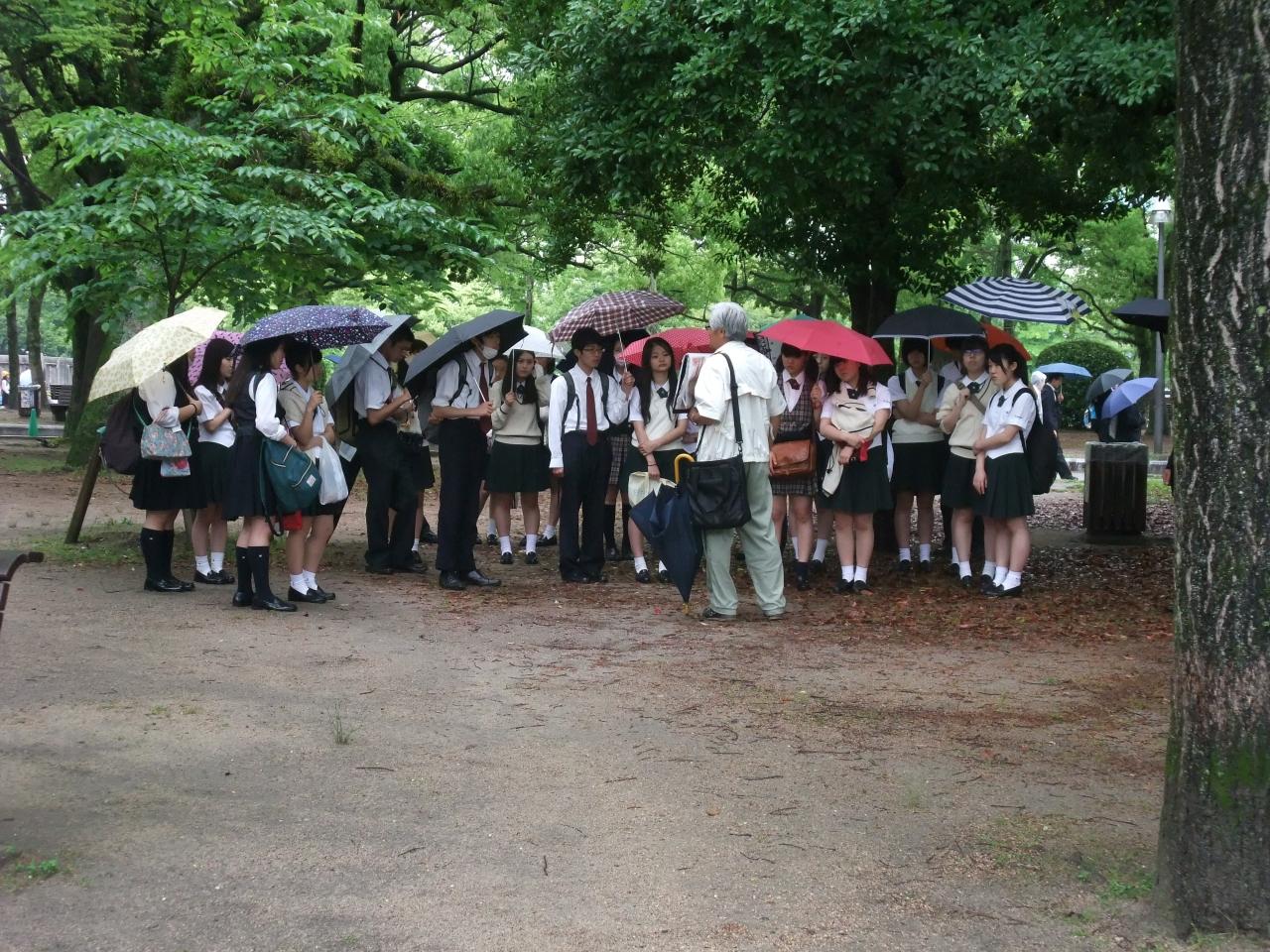 ところで佐々木禎子さんは幟町中学校に通っていました。縮景園のすぐ隣です。中学校にある記念碑。