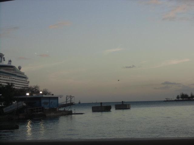 港にクルーズ船が停泊しています。