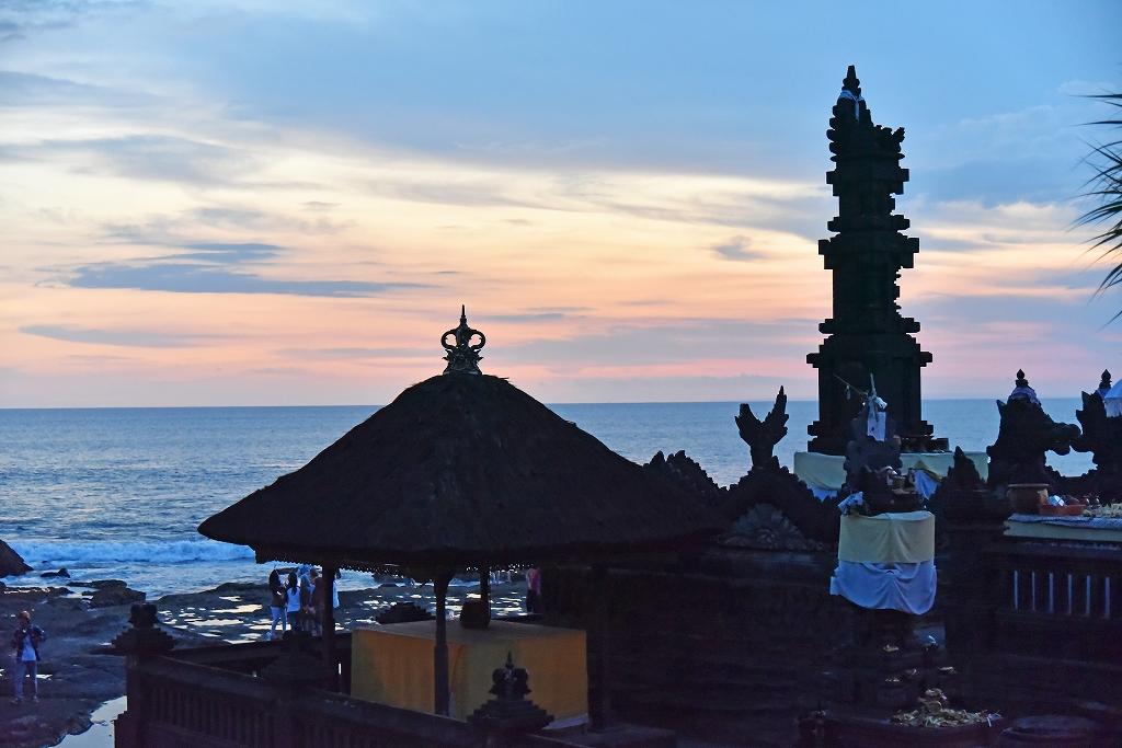 ウルン・ダヌ・ブラタン寺院はバリ島北部にあり、1時間半走って南部海岸にあるタナ・ロット寺院へ。到着したのは、夕方5時頃。夕日が沈む時刻にはまだ間がある。