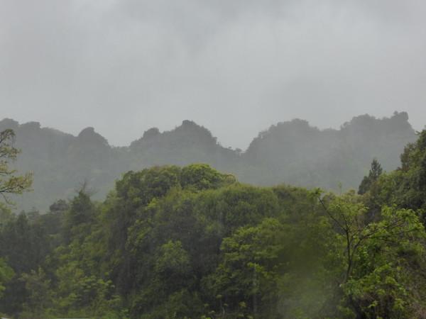 風雨が強く、雨粒が顔に当たると痛いほど。「幽玄の宿」のご夫婦に見送られて出発します